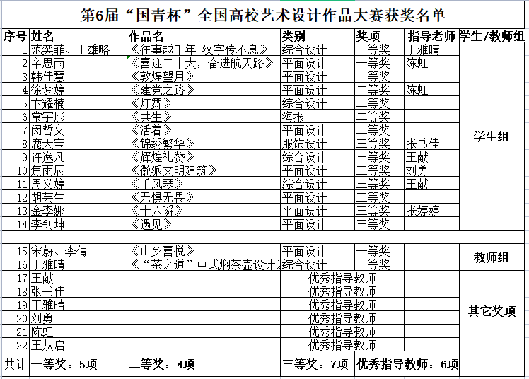 设计学院师生在第六届“国青杯”全国高校艺术设计作品大赛中再获佳绩,其中一等奖5项,二等奖4项,三等奖7项,优秀指导教师6项。 师生积极参加学科竞赛是在紧密结合课堂教学的基础上,以竞赛的方法,培养学生理论联系实际的能力和大学生创新实践能力。设计学院...