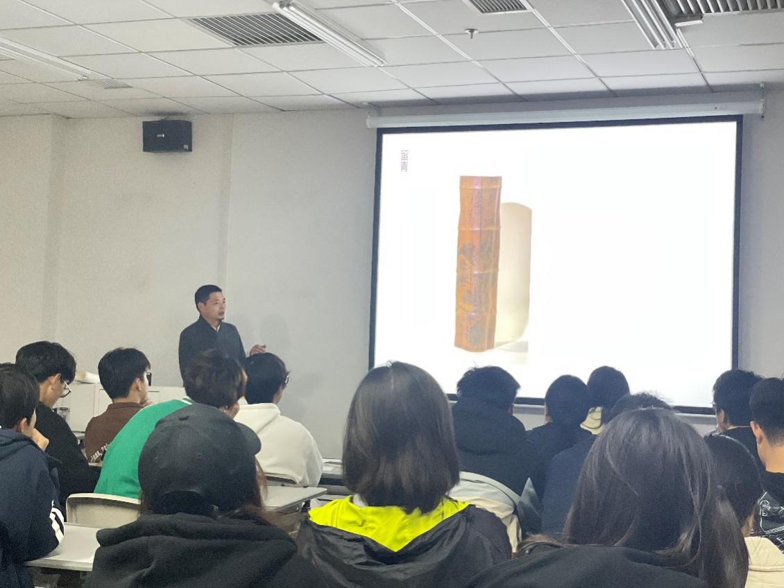 11月21日晚,我校特聘研究员洪建华在设计楼307教室,面向2022级非物质文化遗产保护专业大一新生,开展了有关徽州竹雕保护、传承与发展的专题讲座,洪建华就竹雕技艺及自身雕刻风格,结合竹雕艺术作品,从雕刻艺术的角度阐释了光彩夺目的徽州雕刻文化,也让同...