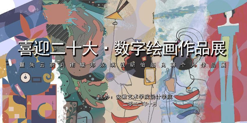 为喜迎党的二十大胜利召开,2022年10月14日中午,由设计学院主办的“喜迎二十大·数字绘画作品展暨朱云蔚、刘雨蝶、郑永琪、钱昕怡、赵良将学生作品展”在设计楼隆重开幕。