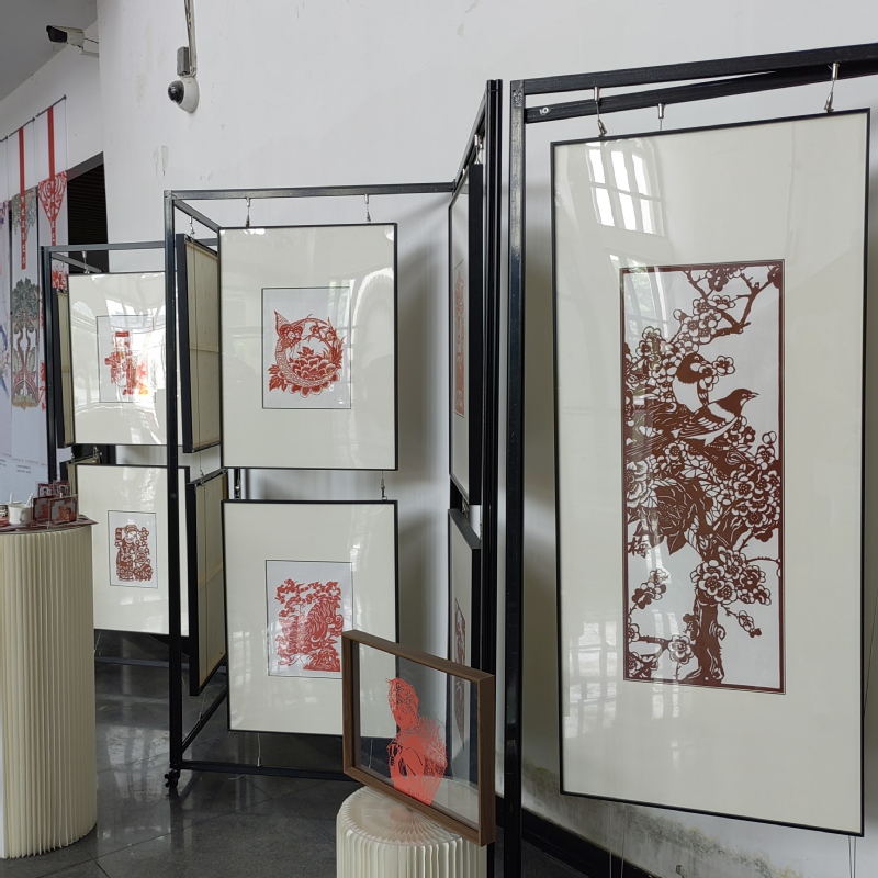 活动现场,雕塑、手工书、雕刻、剪纸、皮影、刺绣、印染等一系列工艺品映入眼帘,每一件作品都别出心裁,洋溢着浓浓的文化气息。工作坊的老师和同学们为大家介绍作品的工艺技术与设计理念,吸引参观者驻足欣赏。