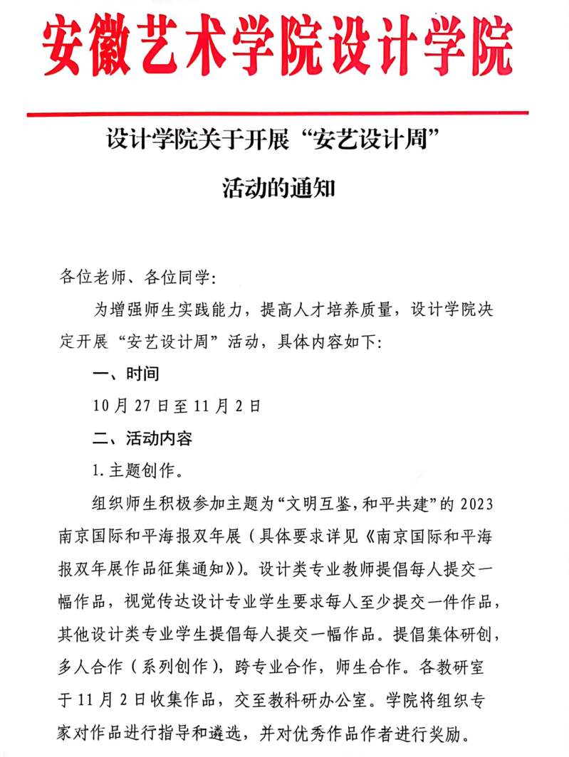 设计学院关于开展“安艺设计周” 活动的通知