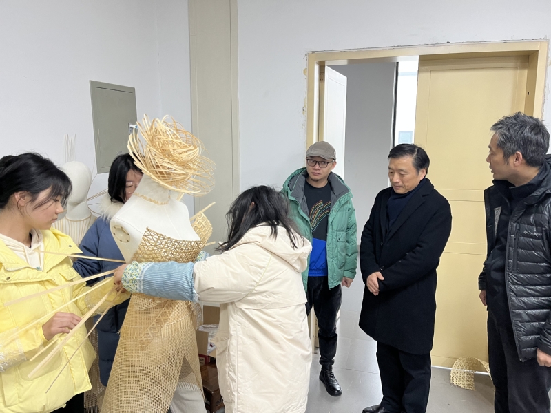 陈林先后参观了徽州雕塑陈列馆、数字媒体实验室、非遗竹编课并现场指导,询问教学细节。