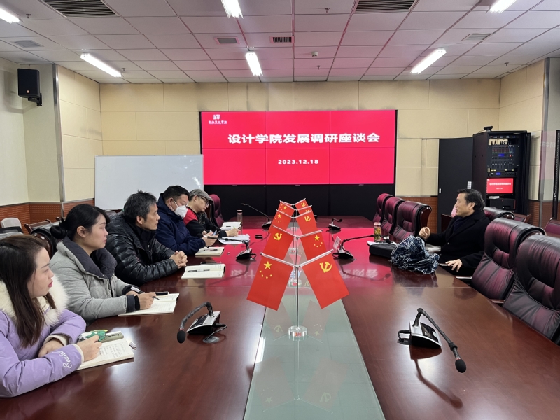 12月18日上午,副院长陈林来到设计学院调研并召开学院发展座谈会。设计学院党总支书记陈明,副书记、副院长夏守军,副院长撒后余以及相关部门负责人与青年教师参加。
