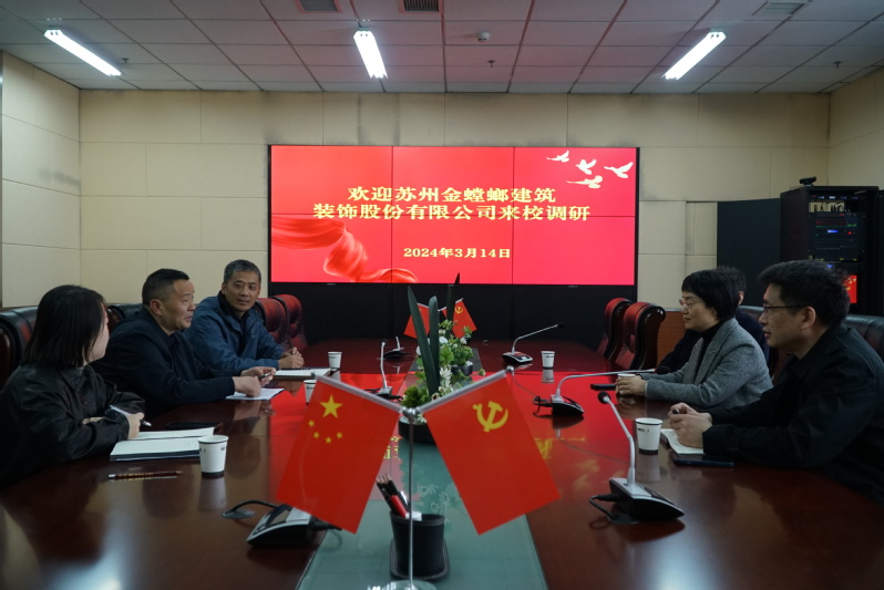 3月14日下午,苏州金螳螂建筑装饰股份有限公司副总经理单言伟一行来学院开展校企合作洽谈。校党委书记韩军,校党政负责人沈端良,学生处处长刘长华,设计学院党总支书记俞璋凌,副院长撒后余等参加洽谈。