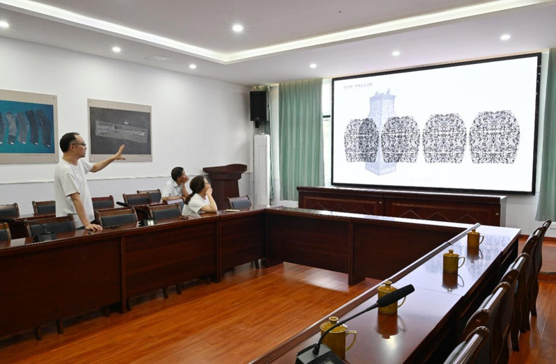 7月6日,安徽艺术学院设计学院夏守军副教授科研团队,在武王墩墓考古领队宫希成研究员等同志的带领下,前往考古发掘现场实地考察,同时,基于“优势互补、资源共享、高效合作、共同发展”的原则,双方签署了《武王墩墓出土文物多学科研究合作协议》,团队对出土器物进行三维扫描建模,器物形制、纹饰图案、装饰工艺等进行绘制分析研究。