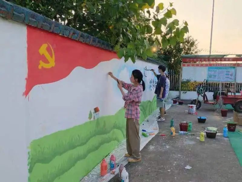 活动期间,实践团学生精心设计了“党建引领乡村振兴”主题文化墙,在炎炎烈日下细致地起稿、上色、绘画,让原本单调的墙面焕然一新,改善了社区的人居环境。实践团学生代表表示:“很荣幸能为社区贡献自己的力量,参加本此活动不仅锻炼了我的专业能力,也丰富了社会实践经历。”