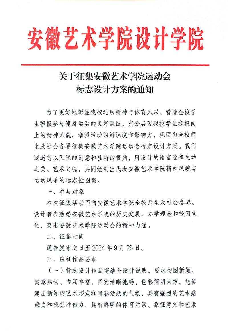 关于征集安徽艺术学院运动会标志设计方案的通知