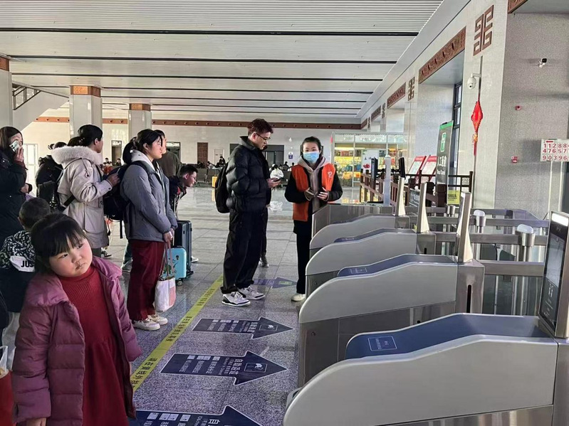 家住阜阳市颍上县的黄思营(23非遗2班)就近加入颍上北站春运志愿服务队,积极开展咨询引导等志愿活动。为旅客群众办实事、办好事,强化青年大学生全心全意为人民服务的宗旨意识。