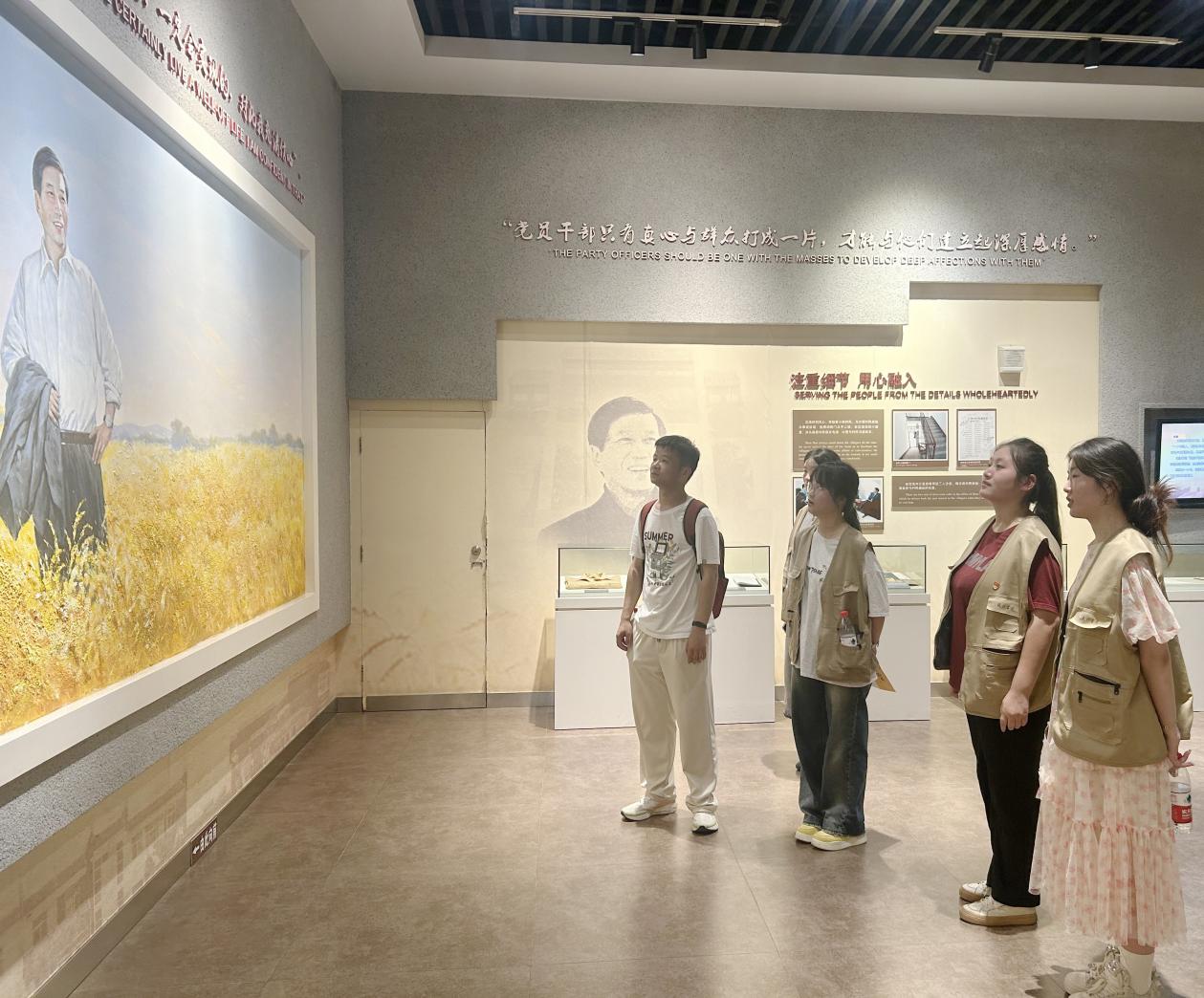 师生们怀着崇敬之情,首先步入大包干纪念馆和“当年农家”旧址。一张张定格历史的图片、一件件承载着壮怀激情的实物,再现了当年小岗村民“敢闯敢试、敢为人先”的创造精神。这份“改革源头”的震撼,让青年们深刻触摸到解放思想、实事求是的改革脉搏,切身感受到实践探索所蕴藏的磅礴伟力。在沈浩同志先进事迹陈列馆前,全体党员面对党旗,庄严重温入党誓词,誓言铿锵,初心如磐。
