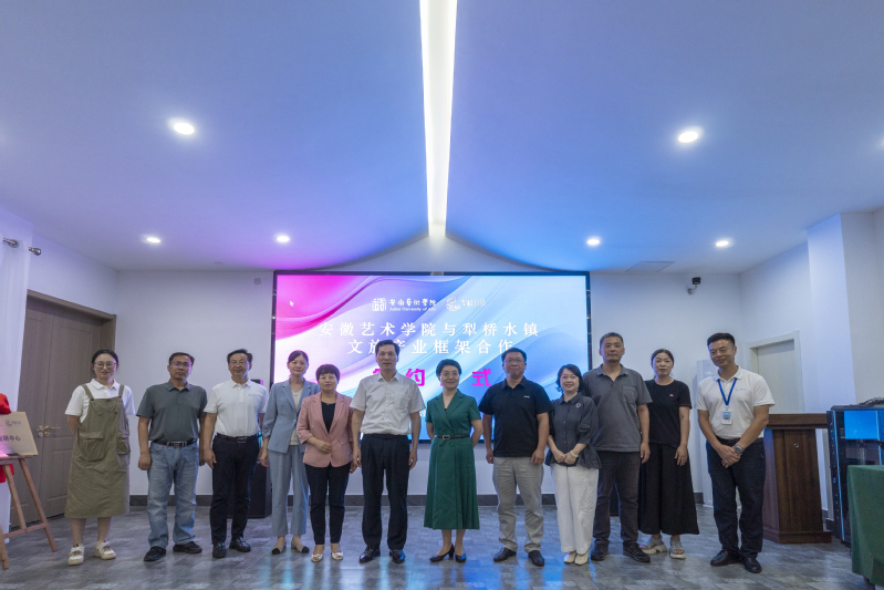 2025年7月31日下午,“艺术赋能・校地共建”安徽艺术学院与铜陵犁桥水镇文旅产业框架合作签约仪式在犁桥水镇隆重举行。此次签约标志着双方正式建立长期战略合作伙伴关系,将共同为安徽文旅产业发展注入新活力,助力文化强省建设。安徽艺术学院党委书记韩军,铜陵市委常委、宣传部部长潘荣华出席签约仪式。