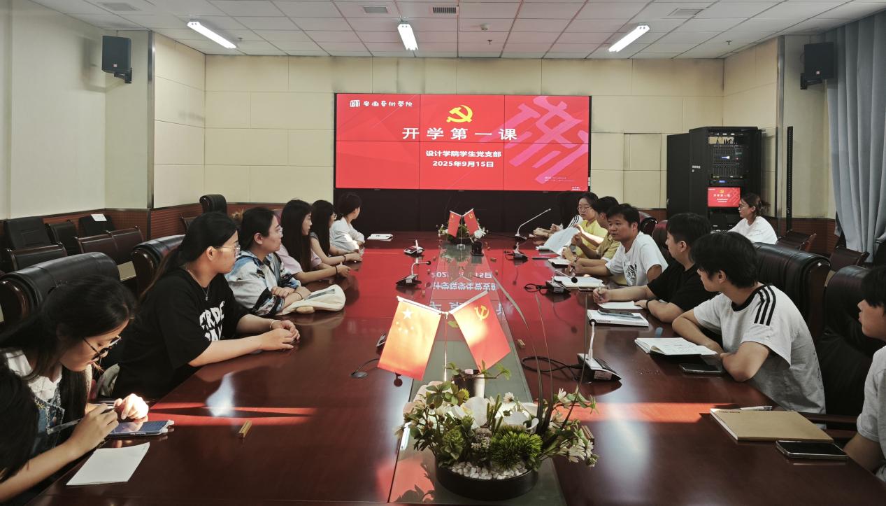 为引导广大学生党员和入党积极分子明确方向,以昂扬姿态投入新学期的学习生活,9月15日下午,设计学院学生党支部于设计楼403会议室隆重举行了“铭记与奋斗”开学第一课主题党日活动。支部全体党员及入党积极分子参加了本次活动。