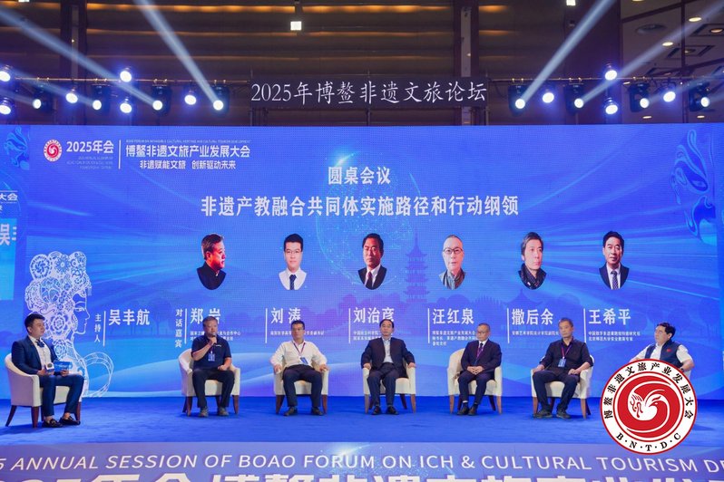 11 月2 日,设计学院教师代表参加以 “非遗赋能文旅,创新驱动未来” 为主题的2025 博鳌非遗文旅产业发展大会,安徽艺术学院原校长、安徽非遗和乡村振兴设计研究院院长樊嘉禄教授,设计学院副院长撒后余出席本次活动,并在会上就非遗保护与传承等内容做经验交流。