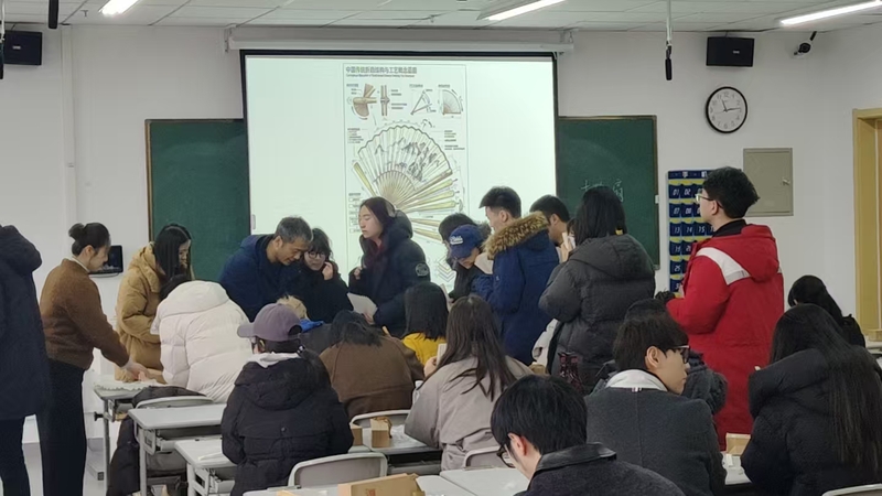 本次研学活动中,设计学院充分发挥专业优势,将“庐州制扇”这一非遗技艺作为文化传播与实践育人的重要载体。活动现场,学院专业教师团队首先通过生动讲解,系统介绍了扇子的历史渊源、工艺特色与文化内涵,从选料、造型到装饰的每一个环节,都让在场师生感受到传统工艺的匠心传承。在手工制作体验区,教师们手把手指导参与者实操,从扇面绘制到组装成型,耐心解答每一个技术细节,让大家在亲身实践中触摸非遗温度,感受传统艺术的创新活力。