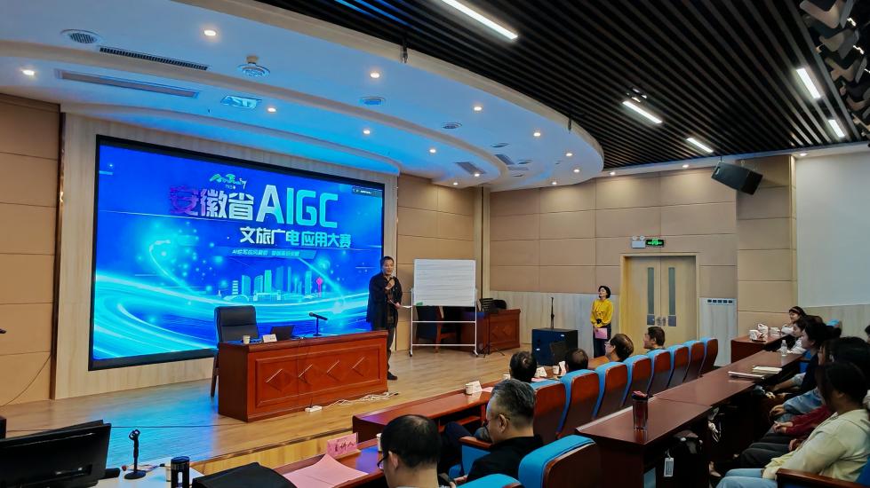 10 月 14 日下午,由安徽省文化和旅游厅主办的安徽省AIGC文旅广电应用大赛宣讲活动在音乐楼报告厅举行,大赛主题是:AI绘写皖风徽韵、智创美好安徽。活动开始,省文旅厅媒体融合发展处副处长杨盛与安徽艺术学院设计学院副院长撒后余分别致辞。从学校育人与学...