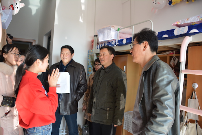 颁奖仪式结束后,大家分为三队,分别参观了二十四个特色宿舍。沈端良副书记对特色宿舍给于了高度的评价,在同学们自己的设计改造下,使宿舍风貌焕然一新。女生宿舍干净、简约;男生宿舍整齐、明亮,青春气息焕发出本来的色彩。(文/陆皖晶  校对/孙鑫)