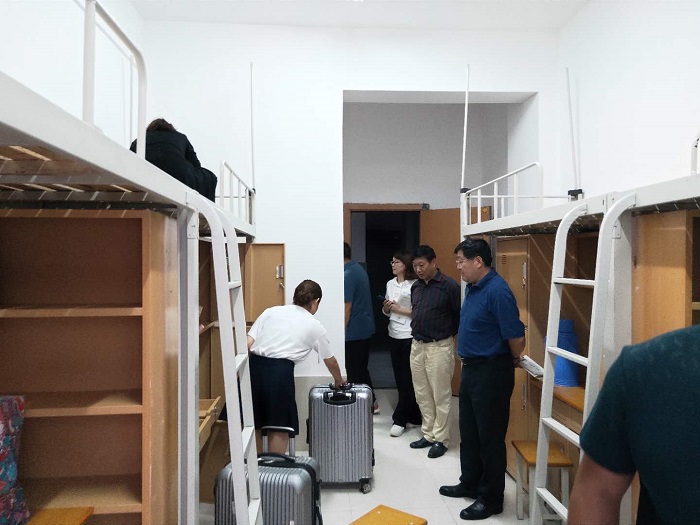 周书记走进学生宿舍,新的学生公寓干净整洁,安全宣传信息一目了然,楼内照明、饮水等设施完好,同时宿管阿姨面带微笑的指引和服务,更让众多学子和家长有种宾至如归的感觉,纷纷对学院迎新工作竖起了大拇指。周书记和陪同学生的家长交流,询问新生的基本情况,还有什么需求,让来自各地的学子和家长们感受到安艺传的温暖。
