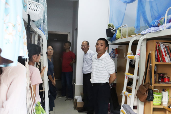 樊嘉禄一行首先来到学生公寓,认真查看一楼的公共洗衣机房,了解设备运行情况,要求物业工作人员为学生提供更多、更好的优质服务。在女生宿舍,樊嘉禄仔细查看了室内布置、物品摆放和卫生情况,并向学生详细了解学习、生活情况。他向在场的老师再次强调了学生公寓工作的重要性,要坚持把学生公寓革新作为一项重要任务来抓,要做好环境育人工作,把保持宿舍的整洁卫生作为学生管理考核的重要标准之一。