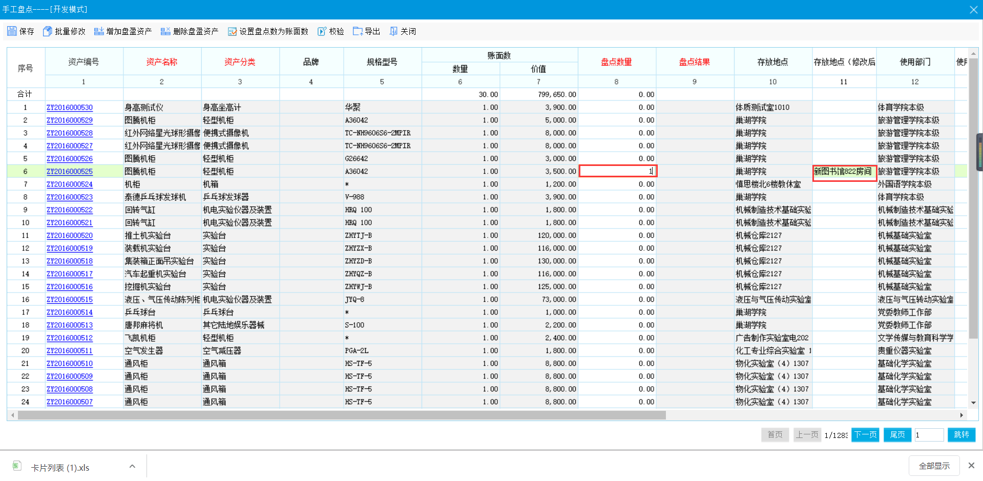盘点单完成确认后,将修改的数据盘点结果回写到卡片中,完成卡片数据调整