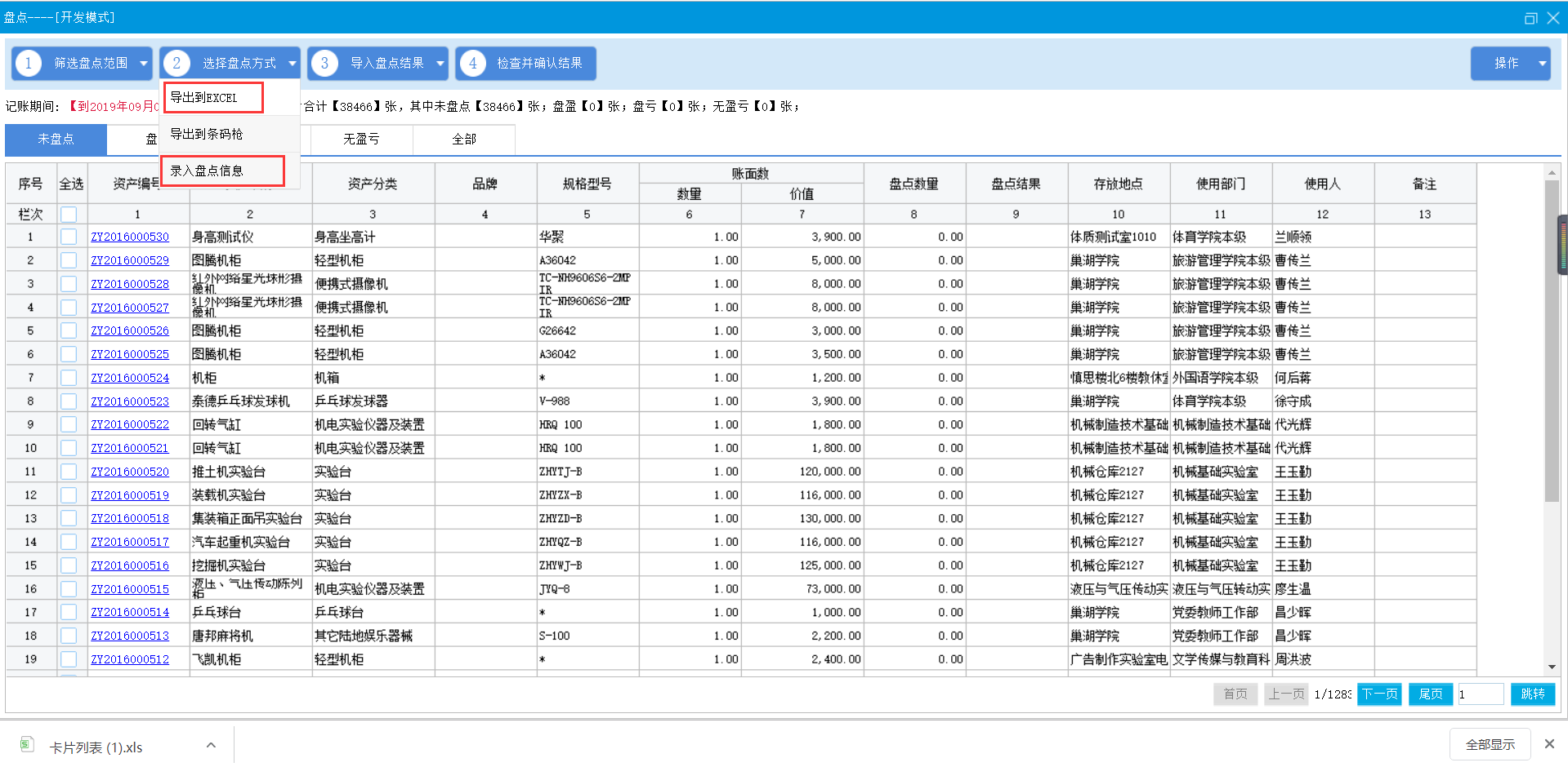 注意:如果通过导出excel方式进行盘点,调整部门,人员,存放地点信息时,请填写对应编号