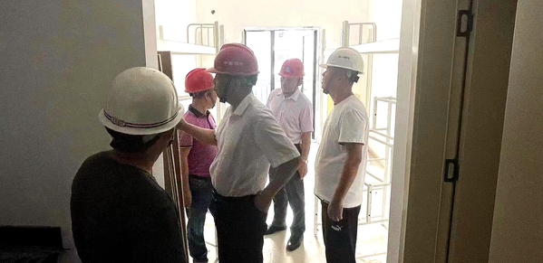 在施工现场,周明洁代表学校对各参建单位的辛勤工作表示衷心感谢。他指出,新生入学在即,后勤部门要发扬连续作战、不怕疲劳的工作作风,抢抓时间完成学生床铺安装、环境保洁、绿化美化和饮水设备安装等入住前期工作。