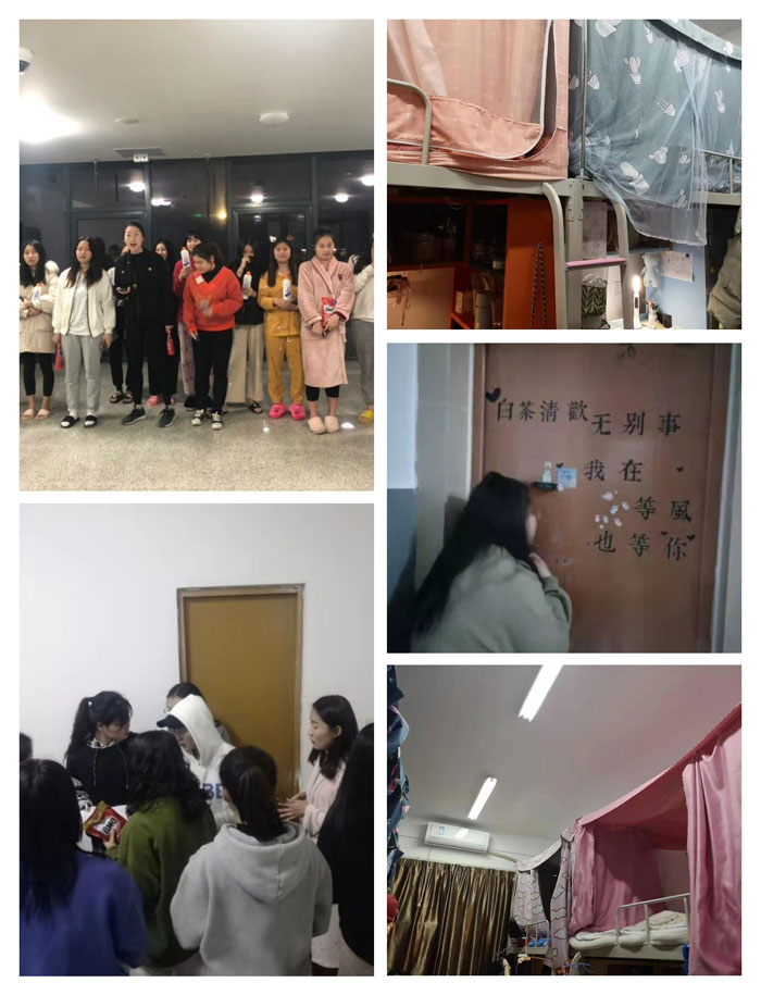 当晚,学生会干部们“秘密集合”,走进同学们的宿舍楼开展评选活动。有的宿舍干净整洁,有的宿舍温馨十足,有的在宿舍门上贴上了个性贴纸,有的摆放着卡通造型的地垫……同学们都用心地将宿舍布置成温暖的家,这些文明宿舍也被作为范例拍照记录下来。