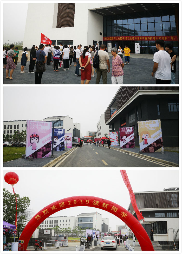 校园里一切早早准备就绪。不仅主干道摆有迎新彩虹门、手绘地图板、报到流程图、四系拟人形象展板、新生签名墙、安全须知等常见迎新设施,教学楼、草坪等处还为新生们准备了可供拍照纪念的大型学生证KT板、带学院定位的“朋友圈”立板等契合00后新生喜好的“打卡”点。各欢迎标语也极尽艺术院校的风格和各系的特色,古雅有平仄工整的对联,深情有“土味情话”,古灵精怪有经典对白借用……随着2019级首届新生的陆续到来,这个周六的安艺校园生机勃勃。