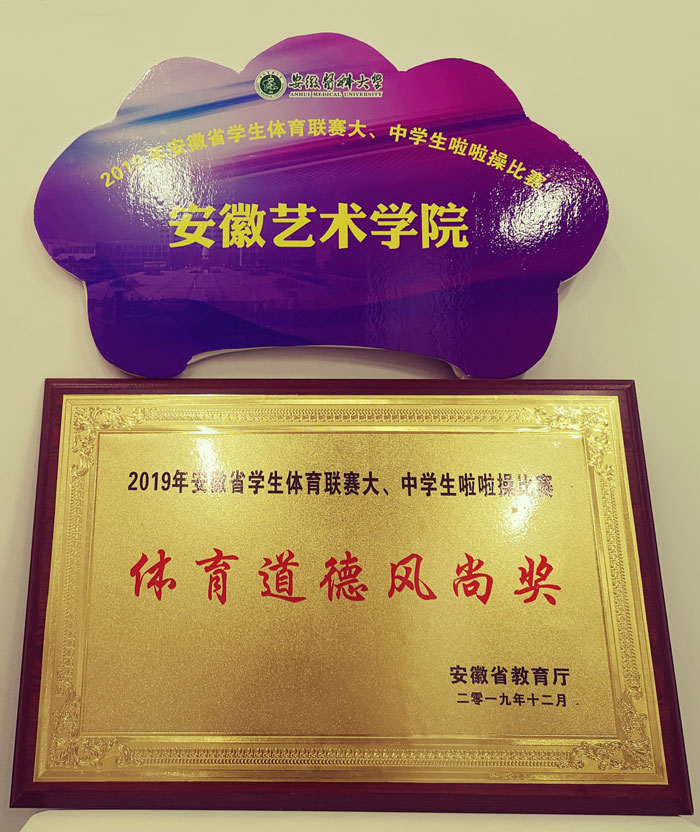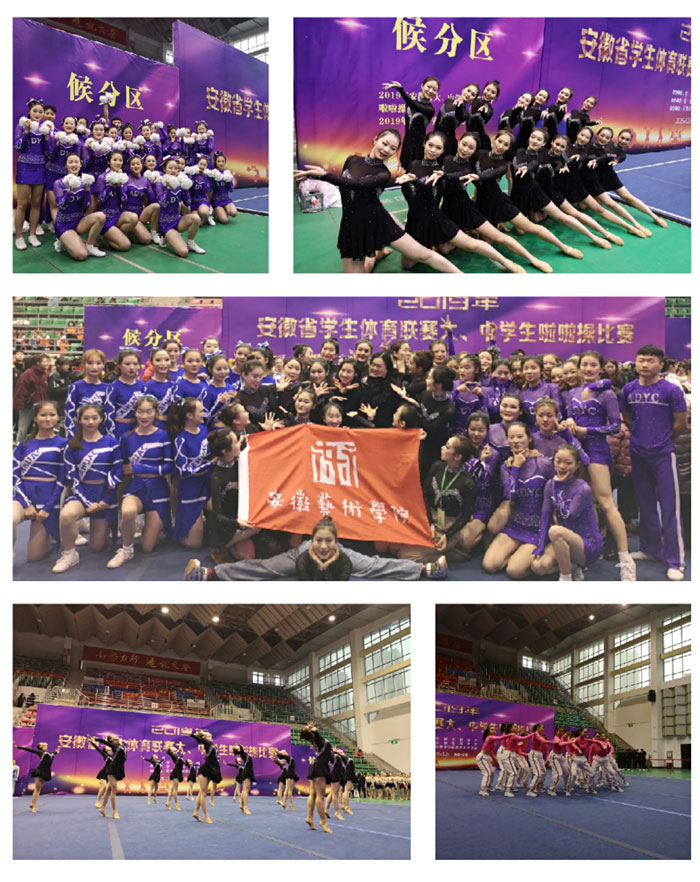 12月24日至25日,由安徽省教育厅主办的2019年安徽省学生体育联赛大、中学生啦啦操比赛在安徽医科大学举行。我院音乐舞蹈系、TOP舞蹈啦啦操社团53名同学经过两整天激烈的预、决赛层层角逐,最终荣获大学生啦啦操甲组集体爵士一等奖、集体花球自选二等奖、集体街舞及集体花球规定三等奖;其中集体爵士更是在全省35支大中专院校代表队中拿到了全场最高分。学院荣获“体育道德风尚奖”,张鹤雨、周虎两位同学荣获个人“体育道德风尚奖”。