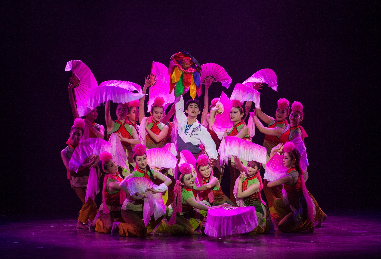 比赛现场座无虚席,绚丽的舞蹈,璀璨的灯光,各个高校齐聚一堂,参赛队伍的表演精彩纷呈、各有千秋。面对众多的竞争对手,我院同学们全力以赴,表演了一段富有安徽特色的花鼓灯舞蹈,跳出了水准,赛出了水平。学生通过绚丽的身姿、有力的动作舞出蓬勃的活力,默契的配合秀出完美的组合。在极富节奏感的音乐下,我院舞者一次又一次地用充满青春活力的舞姿给观众带来视觉上的冲击与享受,扎实专业的技术技巧与传统花鼓灯的精彩表演一次又一次地把现场的气氛带上高潮。全场的观众爆发出阵阵掌声和欢呼。