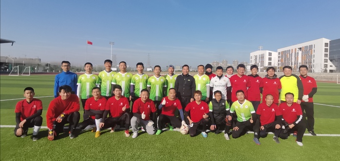 当日虽然低温大风天气,但是双方运动员着装整齐、情绪高涨。学校校长樊嘉禄教授亲临赛场,亲切看望双方运动员,与大家合影留念,并欣然为本次友谊赛开球。比赛分三节进行,随着裁判员一声哨响,做好热身准备的队员们迅速切换到激情竞技的状态。赛场上,两队或长传冲吊、或两翼齐飞、或中场渗透、或贴身逼抢......大家脚法娴熟、好球不断、一个个矫健的身影在球场上辗转腾挪,赢得观众纷纷叫好。经过两节各四十分钟激烈比赛,双方教职工队以四比四的比分握手言和。