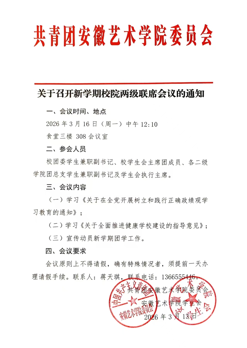 关于召开新学期校院两级联席会议的通知