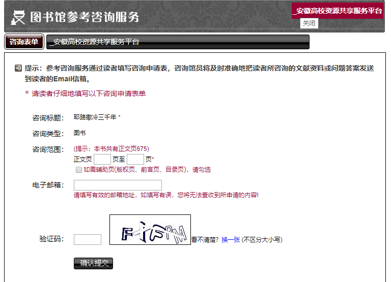 如在使用过程中遇到问题,请直接与图书信息中心联系,电话:0551-64400280。