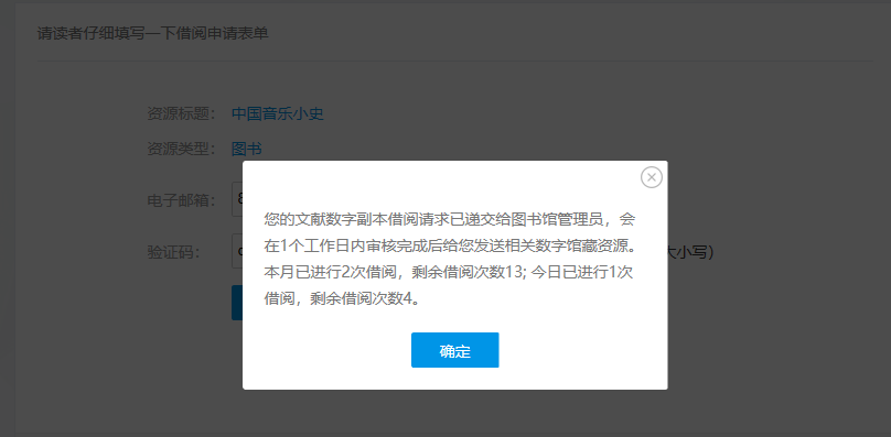 邮件借阅传递量默认每天5本上限,每个月每个账号15本上限。