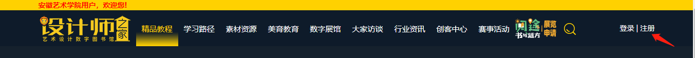 在学校ip范围内打开网址https://www.51sjsj.com,当左上角显示“安徽艺术学院用户,欢迎您”即可访问学习。
