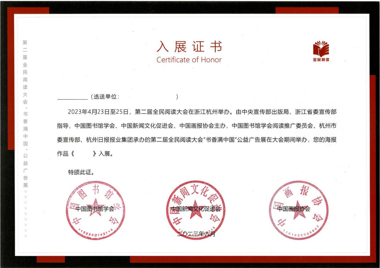 ①推送至第三届全民阅读大会“书香满中国”公益广告展;