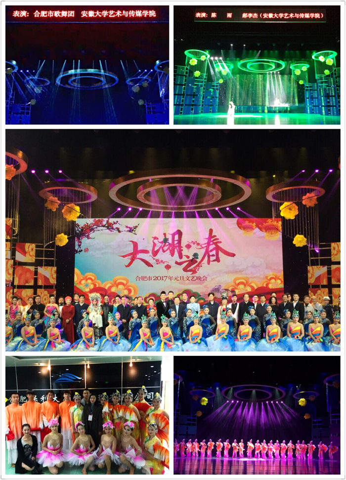 2016年12月27日晚,由合肥市委宣传部主办,合肥市文广新局、合肥文广集团、合肥演艺股份有限公司承办的“大湖之春——合肥市2017年元旦晚会”在合肥大剧院歌剧厅隆重上演。晚会紧扣 “创新、协调、绿色、开放、共享”的主题,以文艺的形式讲述“合肥故事”、弘扬主旋律、传播正能量。宋国权、杨思松、汪卫东、韩冰等省市领导与合肥市优秀共产党员、劳动模范、道德模范、中国好人代表以及来自全市各行各业的劳动者代表等1500多名观众一起观看了演出。