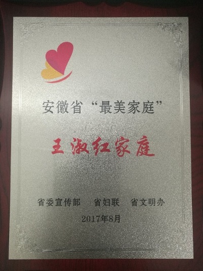 日前,省委宣传部、省妇联、省文明办下发《关于表彰2017年安徽省“最美家庭”的通报》,我院财务处基建财务室主任王淑红家庭被授予2017年安徽省“最美家庭”荣誉称号。