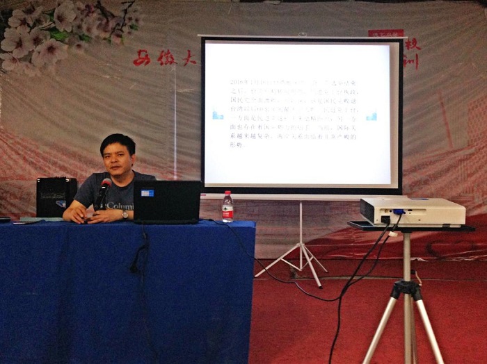国际形势与政策也是目前国内外重点关注的问题,学院教务处处长韩大国立足于我国当前的外交实际,以台湾问题为视角深度剖析,从历史层面、现今状态、未来机遇与挑战三个层面一一展开。他表示,坚持一个中国原则是大学生应深刻认识到的一个坚定立场。同时号召广大青年学生,坚决遏制“台独”分裂行径,坚定维护台海和平稳定,为早日实现祖国和平统一贡献自己的一份力量。