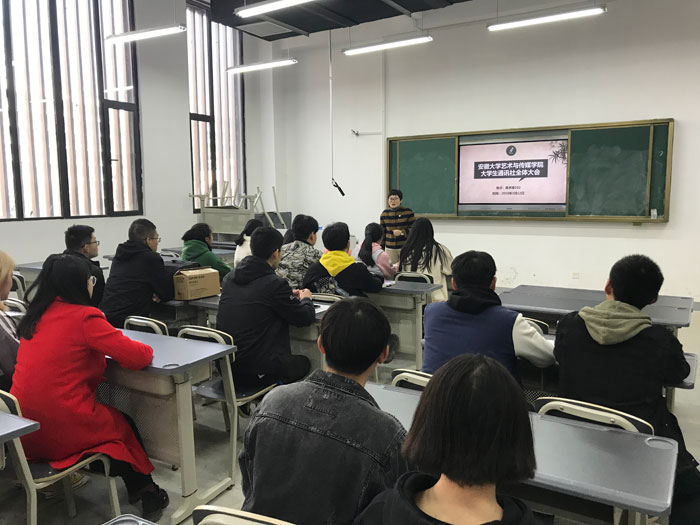 3月12日下午,大学生通讯社在美术楼102教室召开新学期第一次全体会议。会议由代理社长陈志强主持,通讯社执行主编戚庆燕出席会议并发言。
