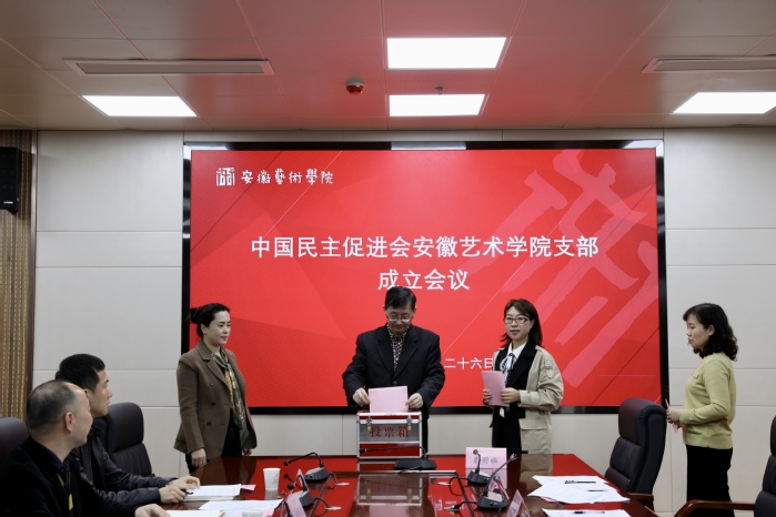 会议选举产生民进安徽艺术学院支部第一届委员会,省政协委员、音乐舞蹈系副教授黄凤霞当选主任委员,总务处副处长、基建办副主任、工会副主席王立仁当选副主任委员,音乐舞蹈系讲师、博士汪伊珺当选委员,并进行了工作分工;黄凤霞代表支部第一届委员会作表态发言;民盟安徽艺术学院支部副主委、美术设计系副教授刘永亮代表兄弟党派基层组织致辞。