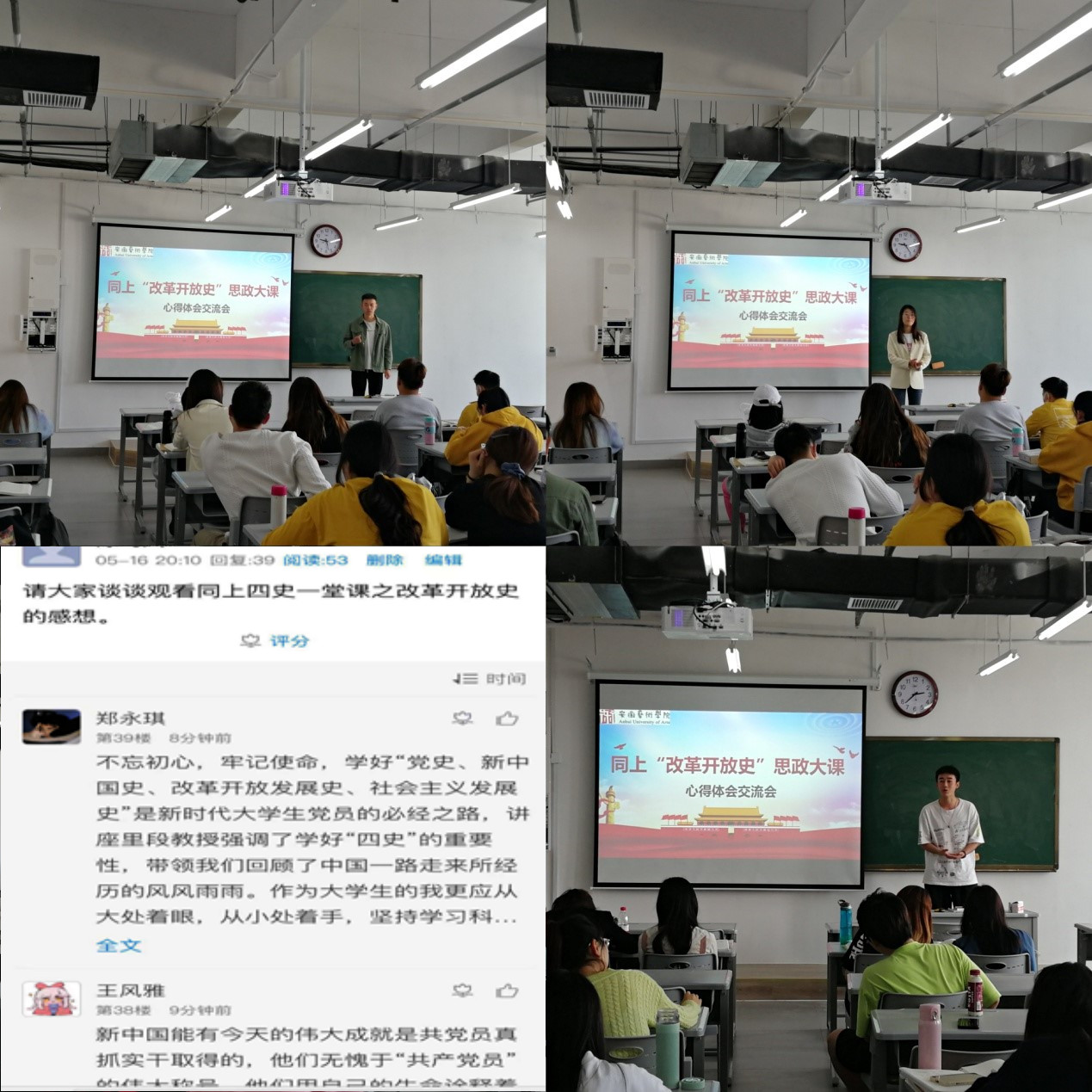 为深入贯彻落实习近平总书记关于深化思想政治理论课改革创新和在党史学习教育动员大会上的重要讲话精神,根据《教育部社科司关于组织全国大学生“同上‘四史’思政大课”的通知》和安徽省教育厅相关通知的要求,我校组织师生通过网络,同上“改革开放史”思政大课。