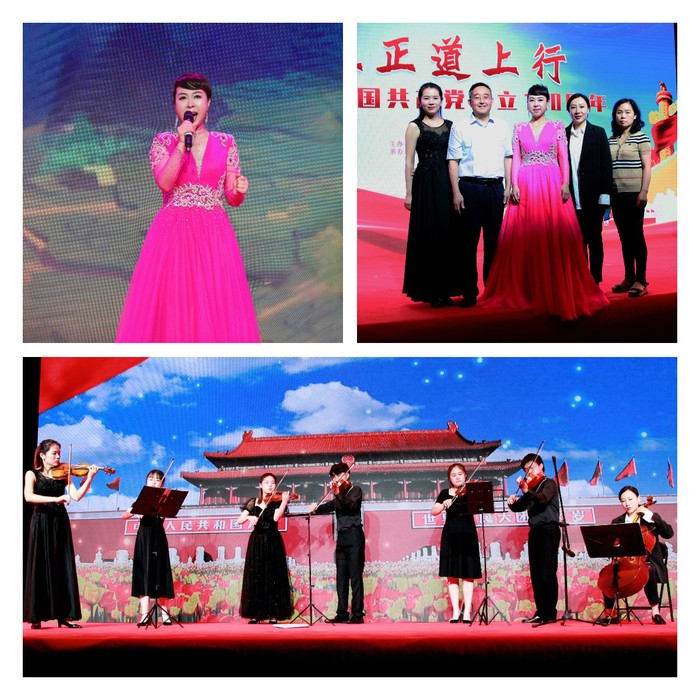 为迎接中国共产党成立100周年,深情回顾多党合作事业奋斗历史和光辉业绩,6月26日下午,民进安徽省直工委在合肥举办“在正道上行”——庆祝中国共产党成立100周年文艺演出活动。校党委委员、统战部部长吴孔铎受邀出席交流并观看演出。民进安徽艺术学院支部主委黄凤霞怀着对中国共产党的崇敬与热爱之情演唱了《领航新时代》,支部委员汪伊珺带领积极分子胡悦和民进之友们共同演奏了弦乐重奏《我爱你中国》。