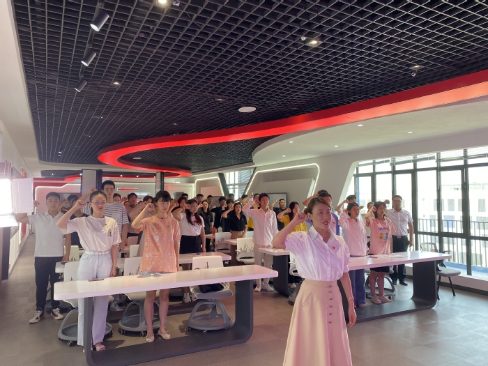 7月1日下午,学校党委组织部在新闻播音楼五楼VR新媒体党员活动中心举行“2021年新发展党员入党宣誓仪式”,校团委副书记、校党委组织部组织员赵晨,组织部潘捷,各有关党支部书记和委员,新发展的54名党员参加宣誓仪式。仪式由潘捷主持。