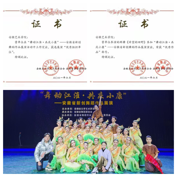 日前,“舞动江淮·共庆小康”——2020安徽省新创舞蹈作品展演活动结果揭晓,由我校龙源、时特两位老师编导的群舞作品《希望的田野》荣获“优秀作品”,我校获选展演“优秀组织单位”。