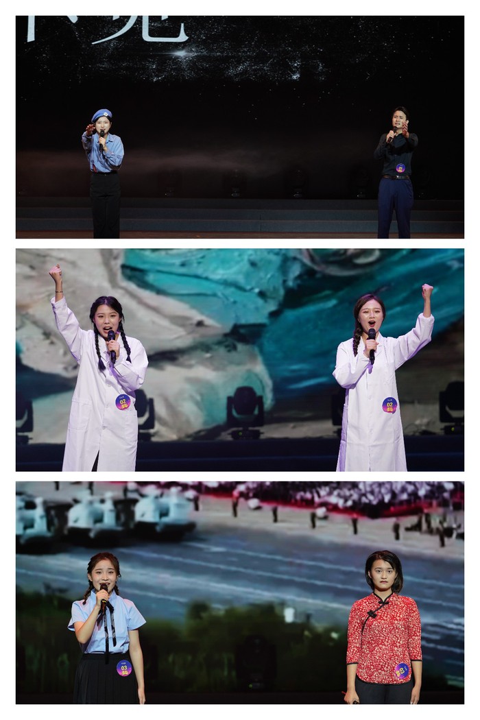 3组非专业组作品、15组专业组作品进入决赛环节。诵读题材涉及广泛,有疫情期间毅然奔赴抗疫前线的英雄姐妹故事,有与革命前辈江姐穿越时空对话的所感所思,有展现在海地地震中牺牲的维和警察与爱人的伉俪情深,有讴歌因保卫空防线英勇牺牲的飞行员故事……一位位参赛选手动情的演绎,紧扣着观众们的心弦。现场的比分也牵动着在场每一位的心,特别是本次比赛特设的最高奖——艺馨奖,奖杯全程矗立在舞台右侧,注视着每一位选手的精彩表现。