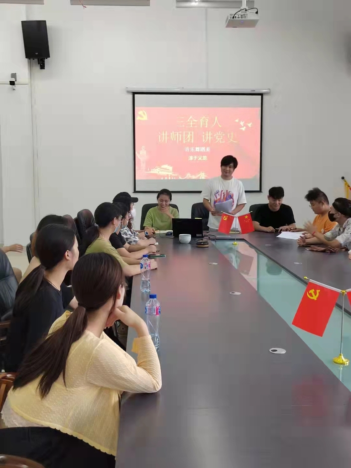 9月15日,校辅导员讲师团成员、音乐舞蹈系专职辅导员、校团委干事淳于义龙,在音乐舞蹈楼会议室带领音乐舞蹈系学生会同学开展了党史学习教育宣讲活动。淳于义龙首先带领同学们学习了习近平总书记“七一”重要讲话精神,并和同学们就“中华民族伟大复兴”这一话题进行了深入探讨。宣讲会后,学生会成员纷纷表示,会牢记习近平总书记的叮嘱,“不负时代,不负韶华,不负党和人民的殷切嘱托”,努力学习,为实现现代化强国贡献出自己的力量。