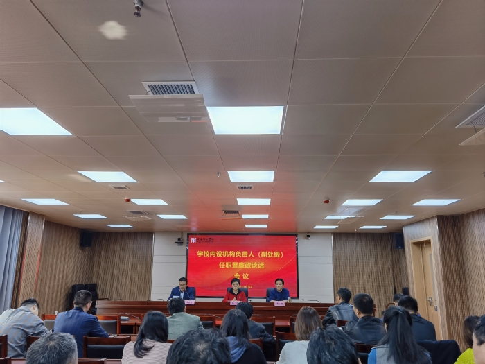 11月3日,学校在综合楼717会议室召开党政机构和教学机构副处级干部任职暨廉政谈话会议。校党委副书记韩军,校纪委书记、监察专员宣扬出席会议。新任职的24名副处级干部参会。会议由校党委委员、组织部部长曹晓富主持。
