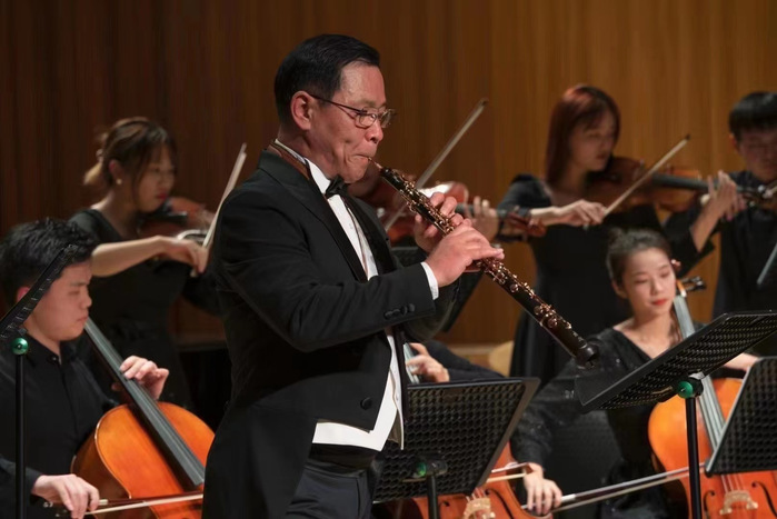 本场音乐会内容丰富,形式多样,先后演奏了萨克斯独奏作品《普罗旺斯图画》 《Ferling Op.27》 《乔治·格什温第二前奏曲》 《西班牙主体与变奏》 《威尼斯狂欢节》 《Memory of you》 ,萨克斯重奏 《千与千寻》 。李胜带来的两首双簧管与弦乐团经典作品《传教士之歌》 《马尔切洛d小调协奏曲》 把全场音乐会气氛推向高潮。在返场曲目萨克斯独奏《深夜里》,本场音乐会圆满结束。(撰搞:张禹、汪伊珺 摄像:鲍远武 初核:孙来法 审定:束舒娅)