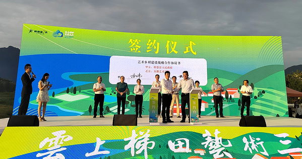 曹晓富与旌德县委常委金伟分别代表安徽艺术学院、旌德县人民政府签订战略合作协议,进一步构建美好蓝图。