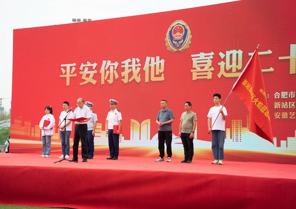 合肥新站高新技术产业开发区消防救援大队政治教导员王晨光宣读火焰蓝志愿服务队成立的通知。戏剧学院学生罗语菡作为志愿服务队代表发言。合肥市消防救援支队副支队长权高峰为火焰蓝志愿服务队授旗。启动仪式后,文艺汇演精彩纷呈,歌曲《不忘初心》、街舞《青春火焰蓝》、小品《我爱火锅》、拉丁舞、歌曲《把戏》等赢得现场观众阵阵喝彩。