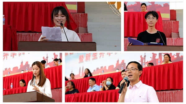 传媒学院2019级学生、国家奖学金获得者武倩楠,戏剧学院2020级学生、《伟大征程》主要参演者、安徽省年度大学生候选人王鹏飞作为老生代表发言。音乐学院辅导员张珂、教务处副处长尹广富作为教师代表发言。